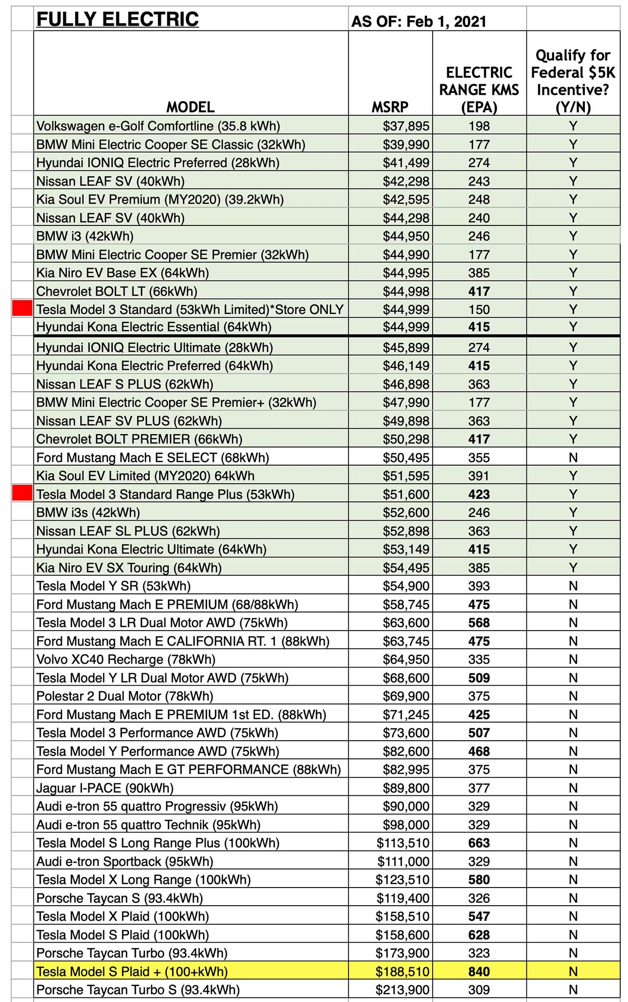 EV Revolution Show (YouTube / Twitter) made the effort to compile the entire list of eligible Canadian iZEV Program EVs and put it inside the following chart (chart last updated on 1st Feb 2021).