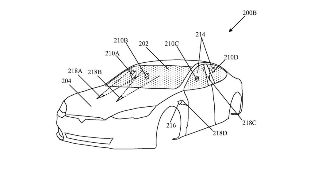 Looking at the patent details (images below) — the pulsed laser cleaning of debris is not limited to the windshield only. Tesla has actually designed this system to clean debris from Autopilot cameras, door windows, and even the turn indicators as well.