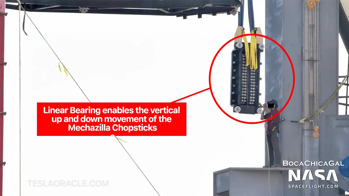 The Linear Bearing assembly was also installed on Mechazilla yesterday. This set of huge bearings will enable the up and down movement of the Chopsticks that will help in catching and mounting Starship and Super Heavy.