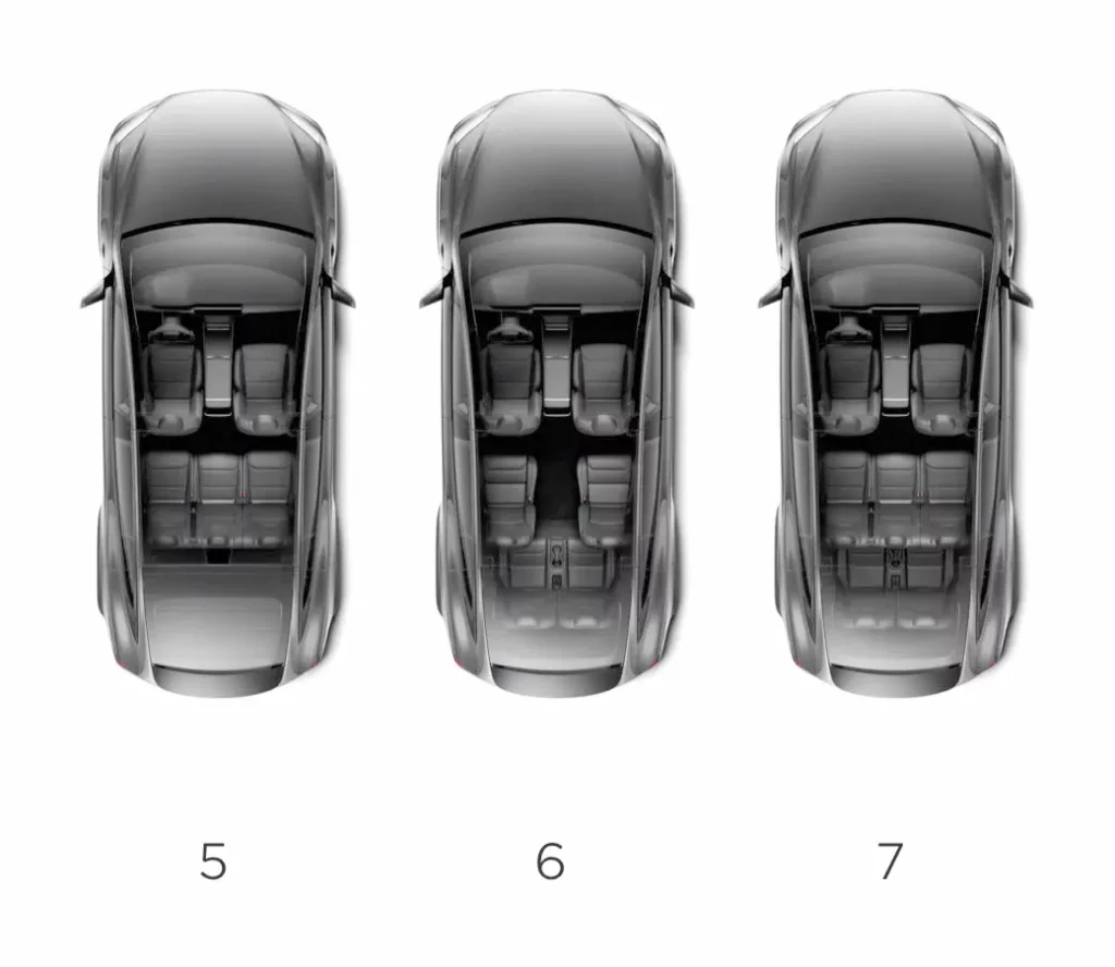 5, 6, and 7 seat configurations of the 2021 Tesla Model X interior.