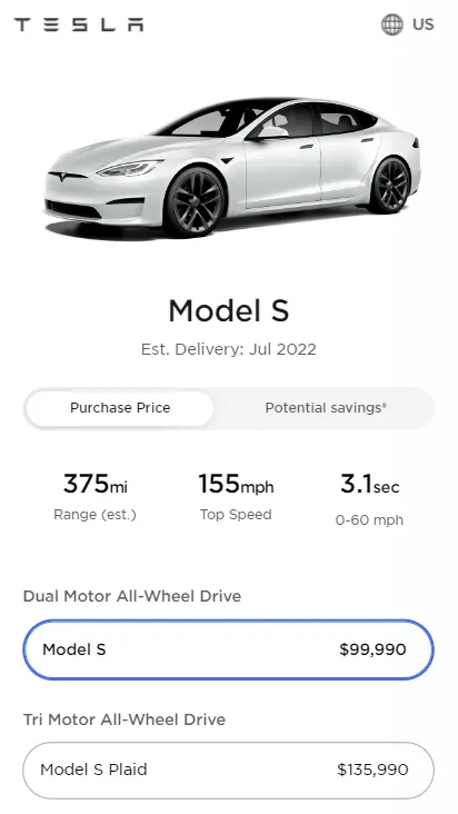 - Tesla Model S Plaid Tri-Motor AWD = $135,990