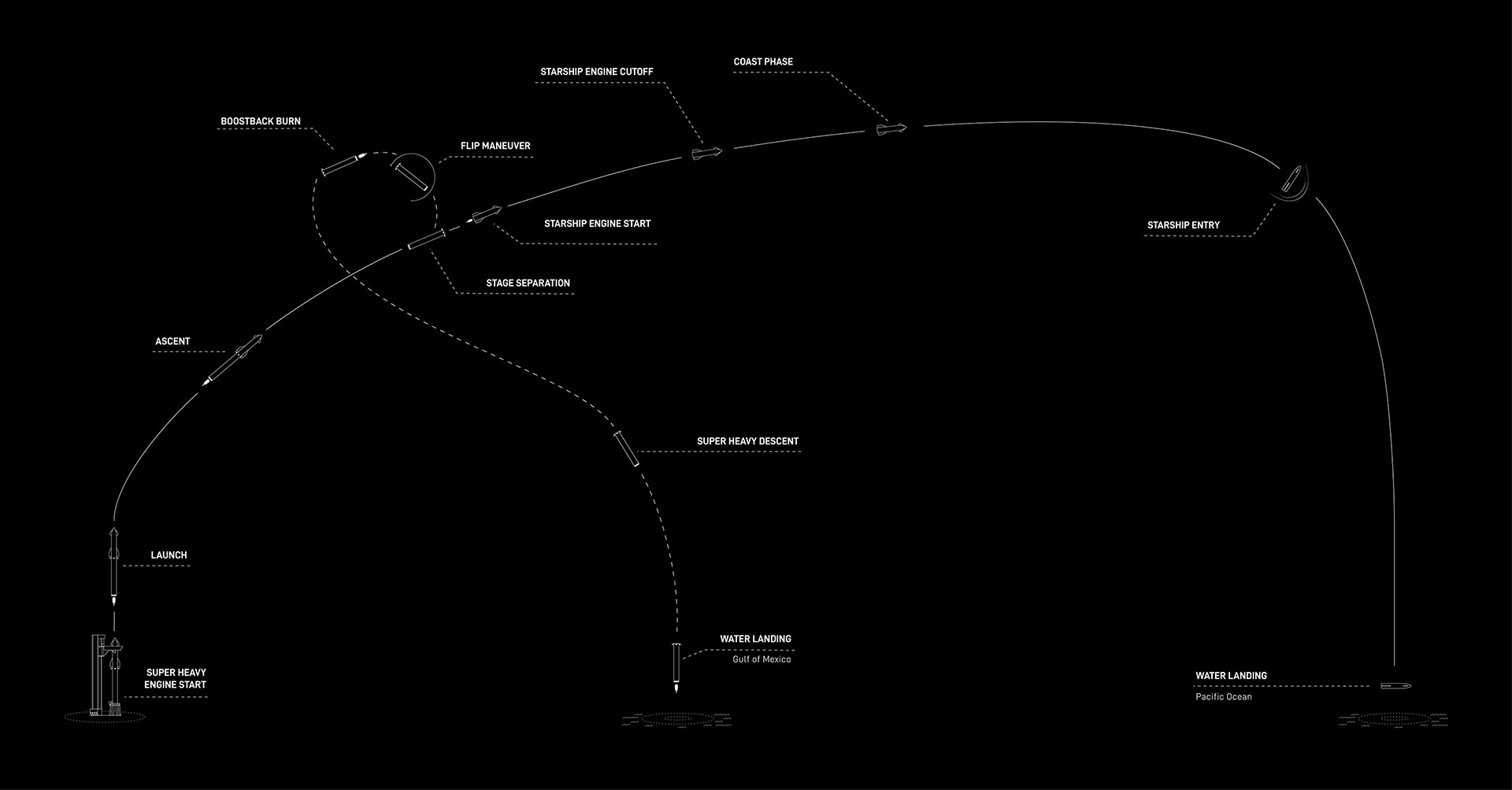 SpaceX also shared an interesting infographic that details the launch, flight, and landing path of both Starship (2nd stage) and the Super Heavy Booster 7 rocket (1st stage).