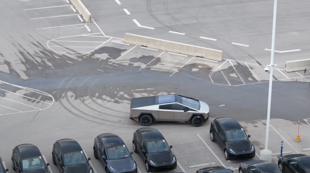 We can see that four perfect circles are formed as the Cybertruck takes the 360-degree turn on the wet surface of the Giga Texas parking lot. It’s a timelapse video, so the Cybertruck has taken the turn slower than we see in the video above.
