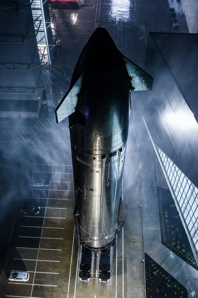 These amazing photos of Starship V2 (Ship 33) depict a futuristic Blade Runner-esque theme of SpaceX’s Starbase launch and Starship production site. The dark hour of the morning and rain added an extra punch of the vibe.