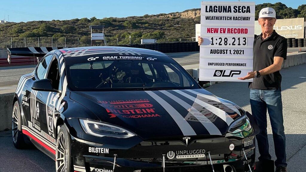 Watch the Unplugged Tesla Model S Plaid set a new EV lap record at Laguna Seca