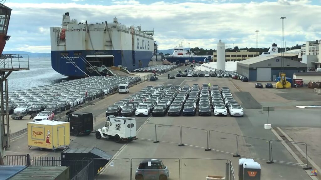 Around 1,300 China-made Tesla Model Ys unload at the Port of Oslo, Norway