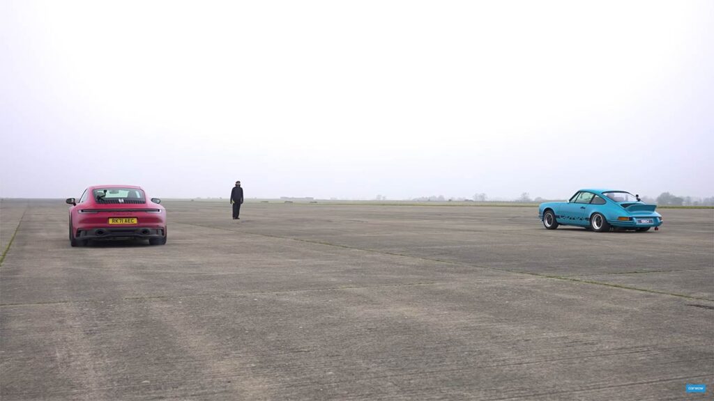 Classic electric Porsche with a Tesla motor gives tough time to Porsche 911 GTS in a drag racing battle