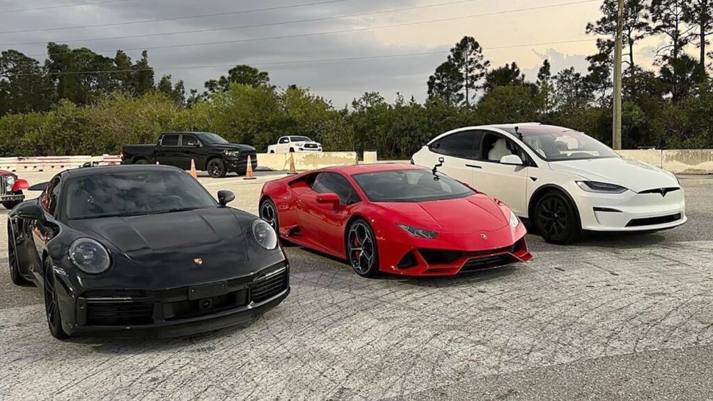 Electric SUV vs. supercar drag racing: Porsche 992 and Lamborghini Huracan face Tesla Model X Plaid