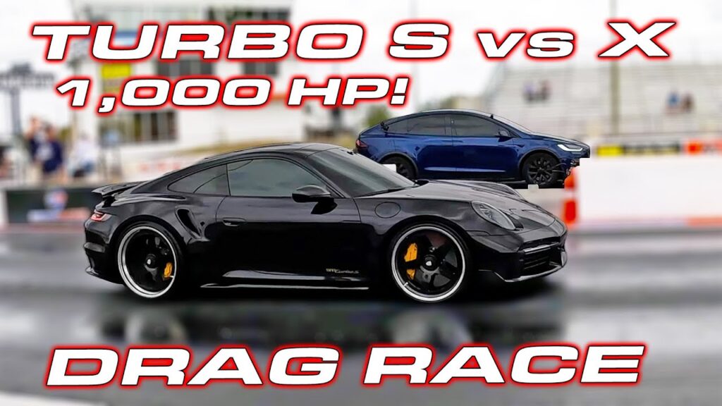 Watch how Tesla Model X Plaid electric SUV defeats a highly modified Porsche 992 Turbo S Coupe on a dragstrip