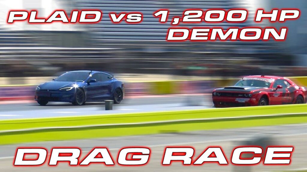 Unplugged Tesla Model S Plaid faces Ferrari Enzo in a drag racing challenge
