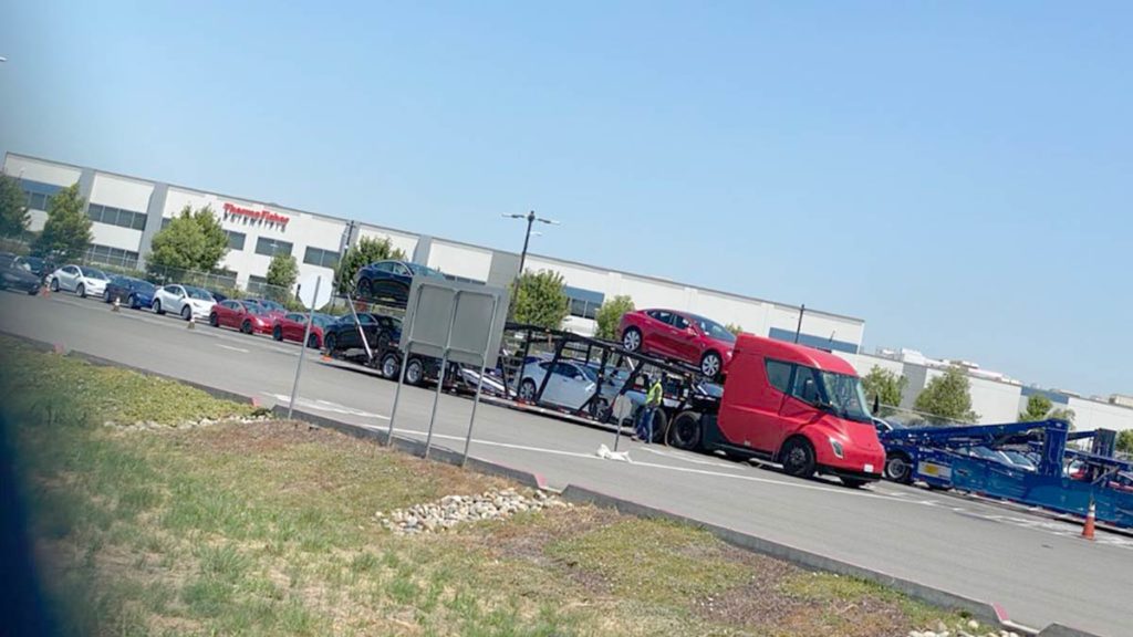 Tesla Semi spotted loaded with Model Y and Model 3 cars leaving for deliveries